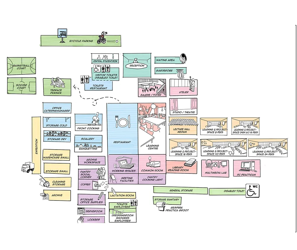 Met 3d-plattegronden van gebouwen krijgt u een inkijkje in het gebouw zelf. Ik haal als het ware het dak letterlijk van het gebouw, zodat u erin kan kijken. De 3d plattegronden worden veel gebruikt als wegwijzer of inrichtingsplan. Maar ook als inrichtingsvisie. Een variant hierop is een exploded view waarin ik verschillende verdiepingen boven elkaar maak.