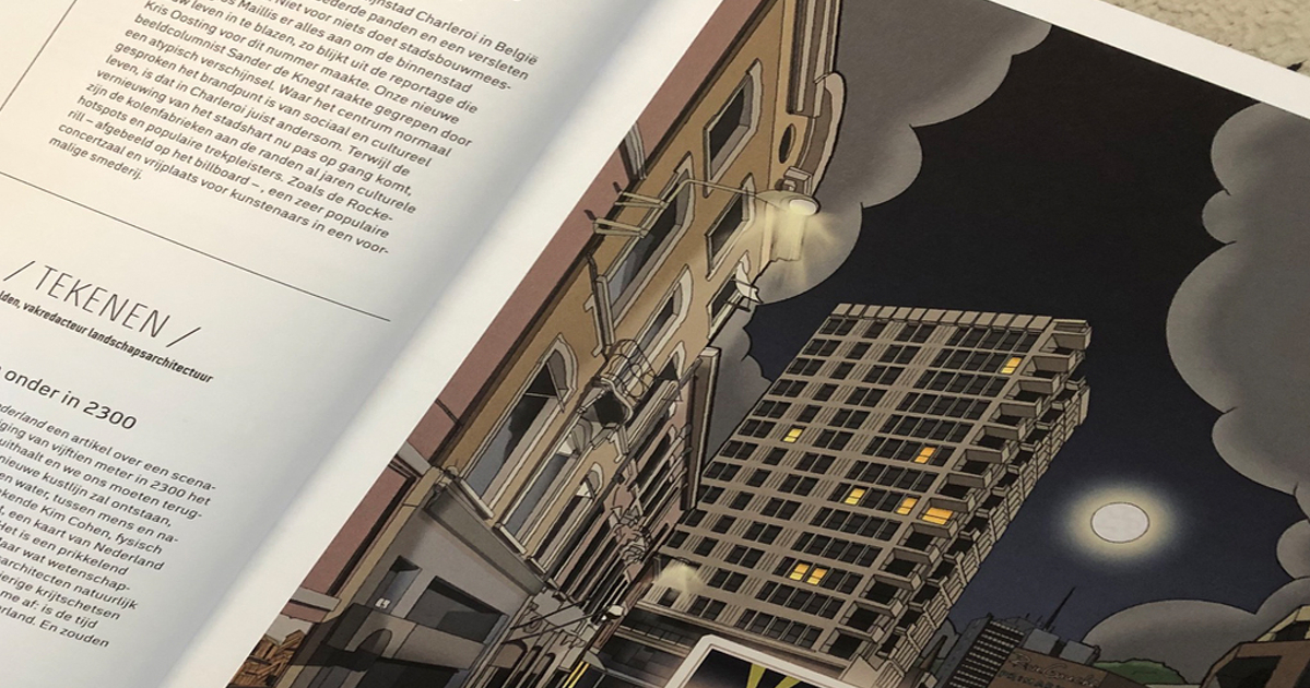 Elk kwartaal maak ik van een actueel ruimtelijkethema een beeld column. Een visualisatie die de kansen of juist de ironie laat zien. De tekeningen laten de lezer steeds nadenken over de ruimtelijke gevolgen. Elke illustratie past steeds in de grote lijn van elk afzonderlijk uitgave van de blauwe kamer.