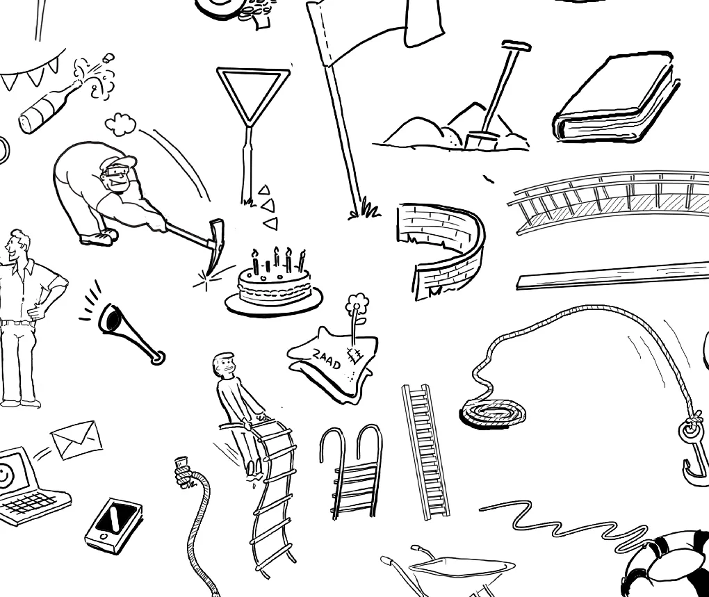 Een tekening is strategisch als hij meerwaarde heeft voor uw proces. Hoe werkt dat? Het belangrijkste is dat er geen standaard proces is en dus ook geen standaard tekening. Per opgave bepalen we samen de stijl en vorm zodat de tekening past bij uw proces en doel.Strategische beelden moeten verhalend en dus gelaagd zijn. Ik maak ze conform de 3-30-300 seconden regel. Dat betekent dat de hoofdlijnen direct duidelijk zijn (3 seconden). Als u er langer naar kijkt ziet u meer context (30 seconden). Vervolgens ziet u meer details en eventueel voorbeelden (300 seconden).Enkele voorbeelden van wat mijn illustraties strategisch maakt: