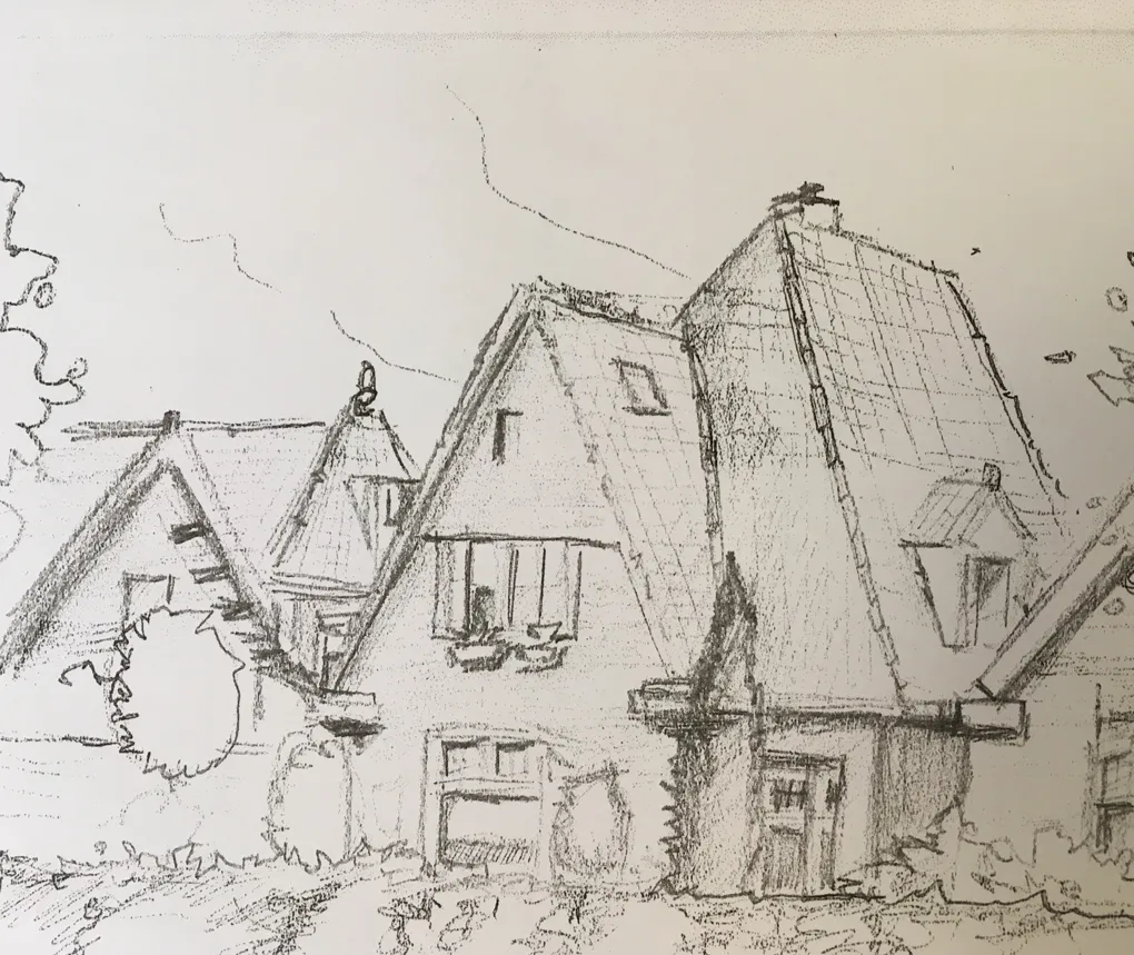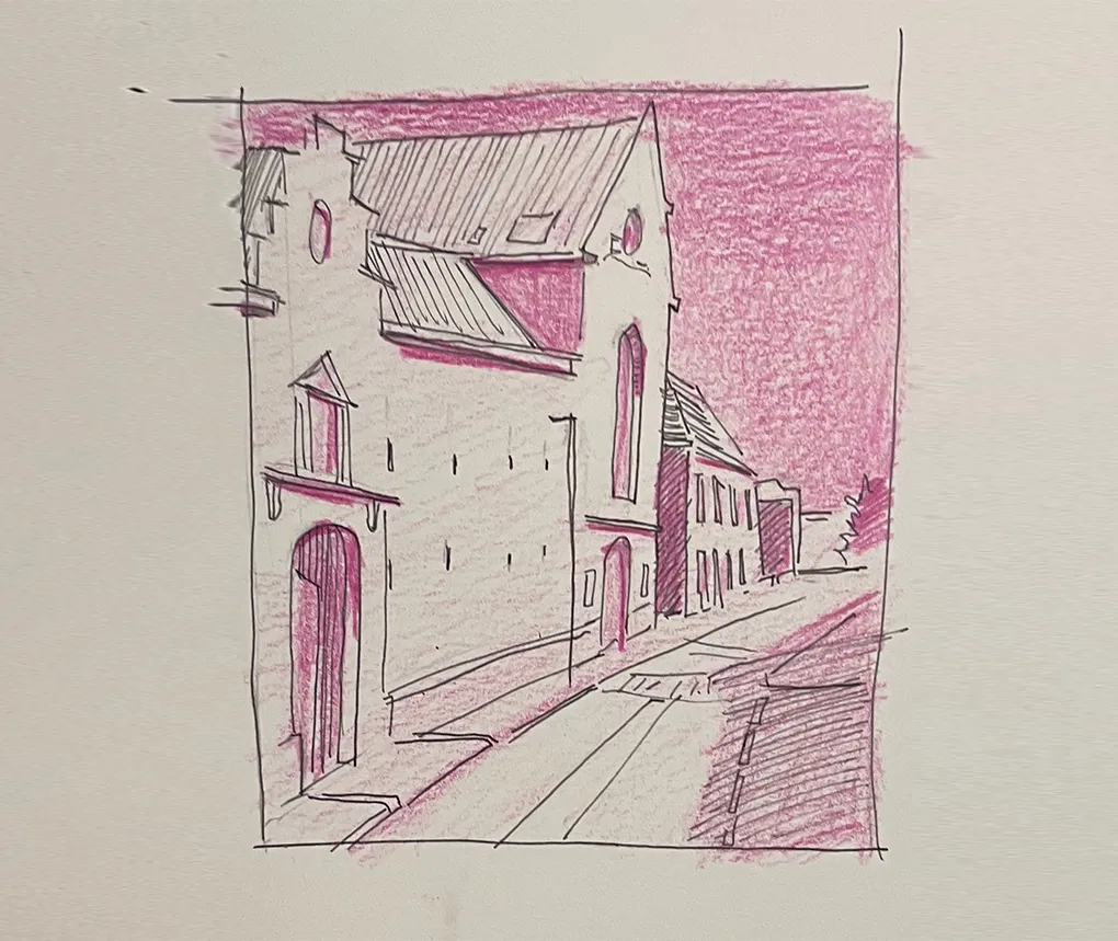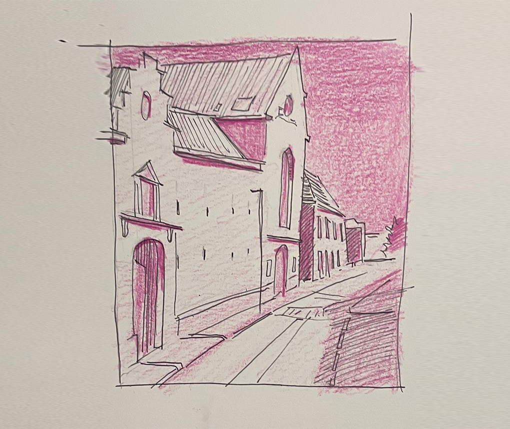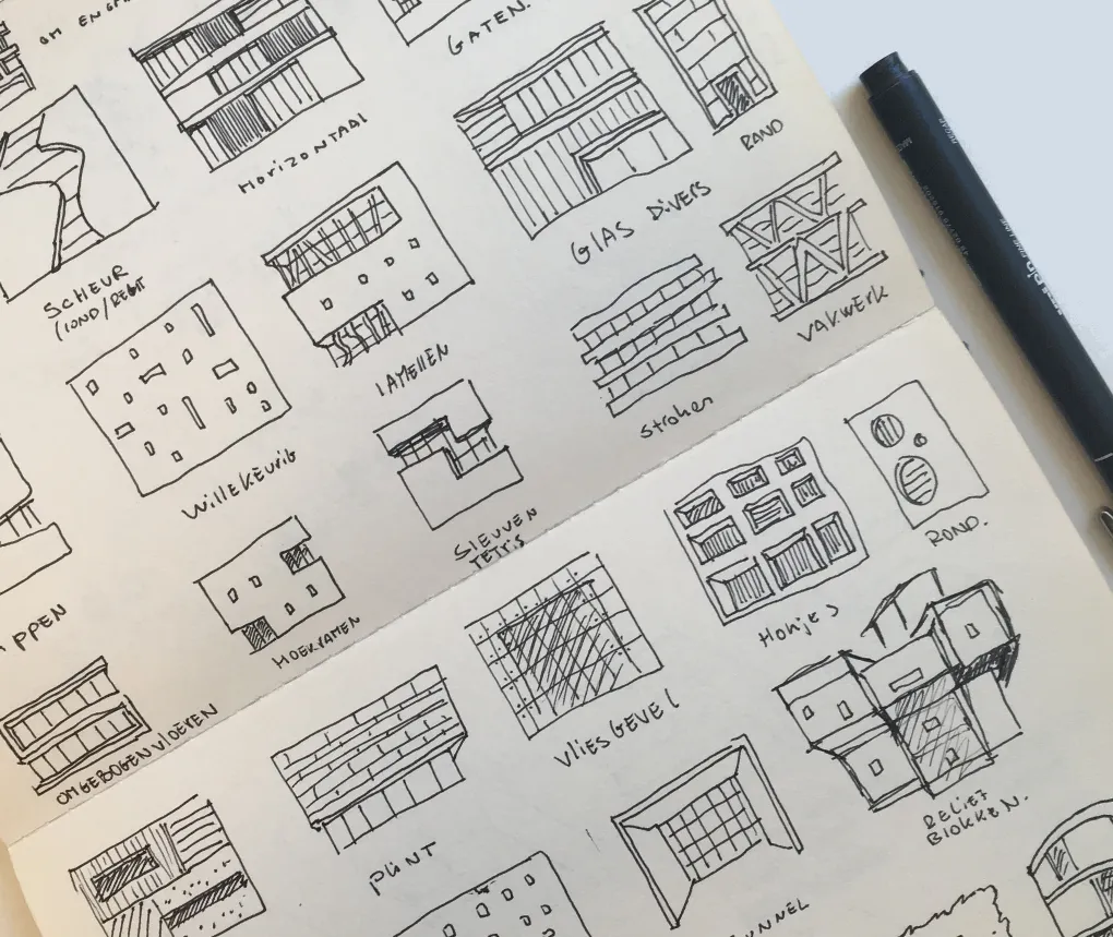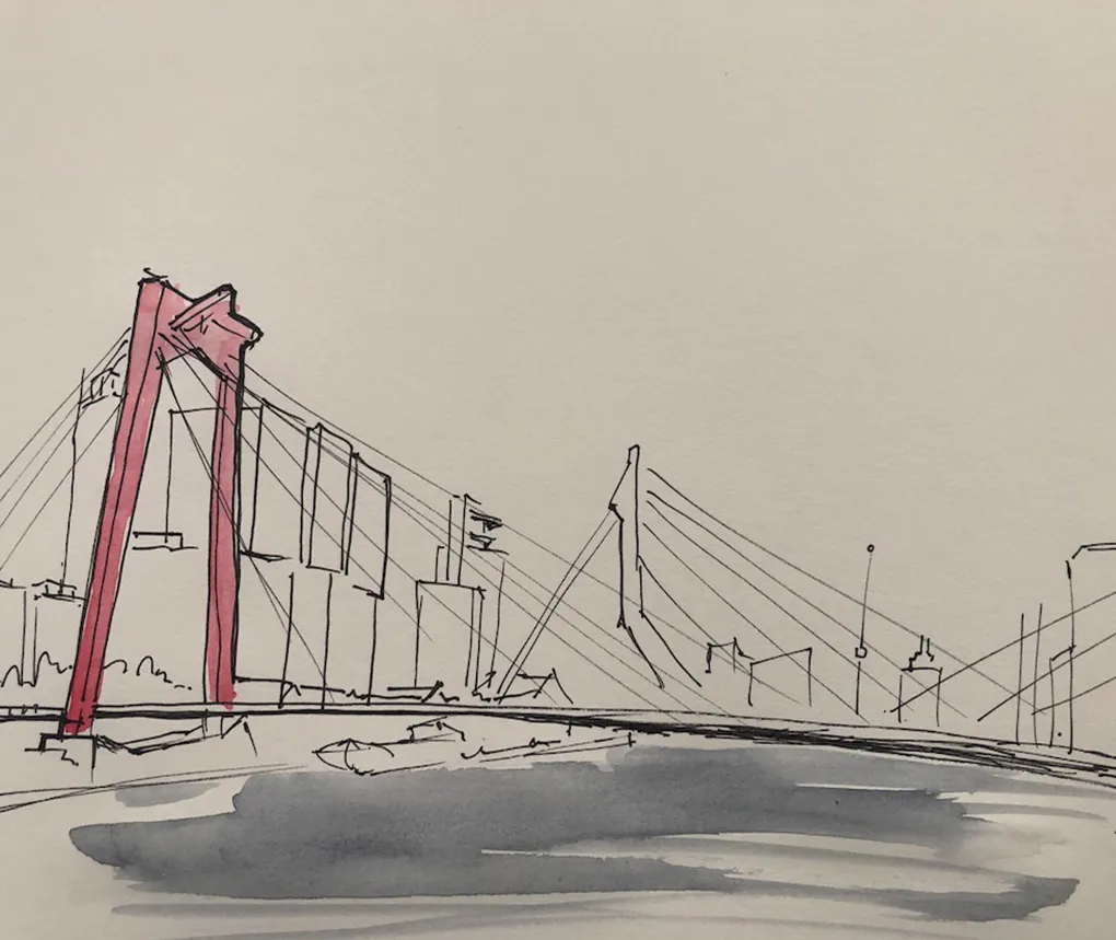 Ik ga ook regelmatig mee met architectuur excursies om daar buiten gebouwen te tekenen. Ook ga ik a en toe op pad met andere Urban Sketchers op om ergens op locatie leuke plekken uit de de stad te tekenen.