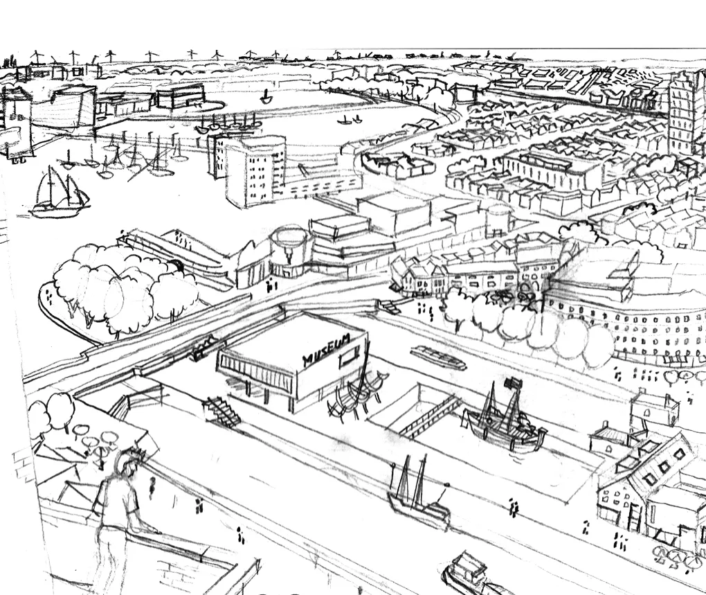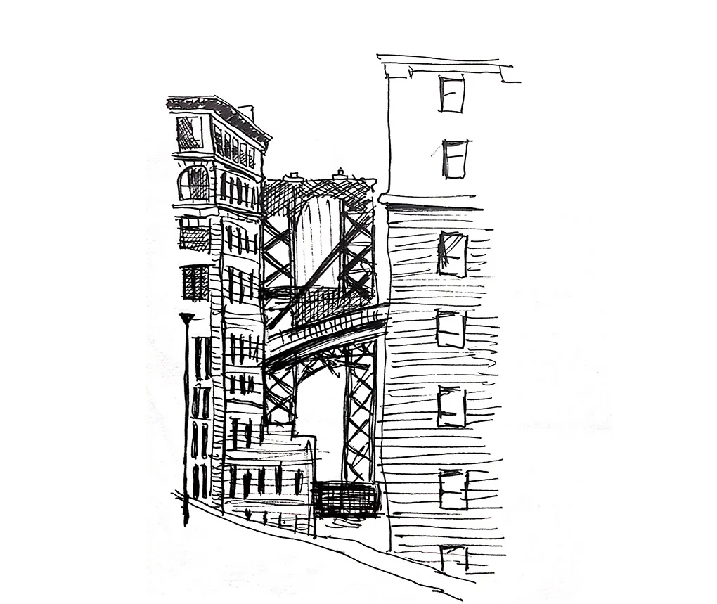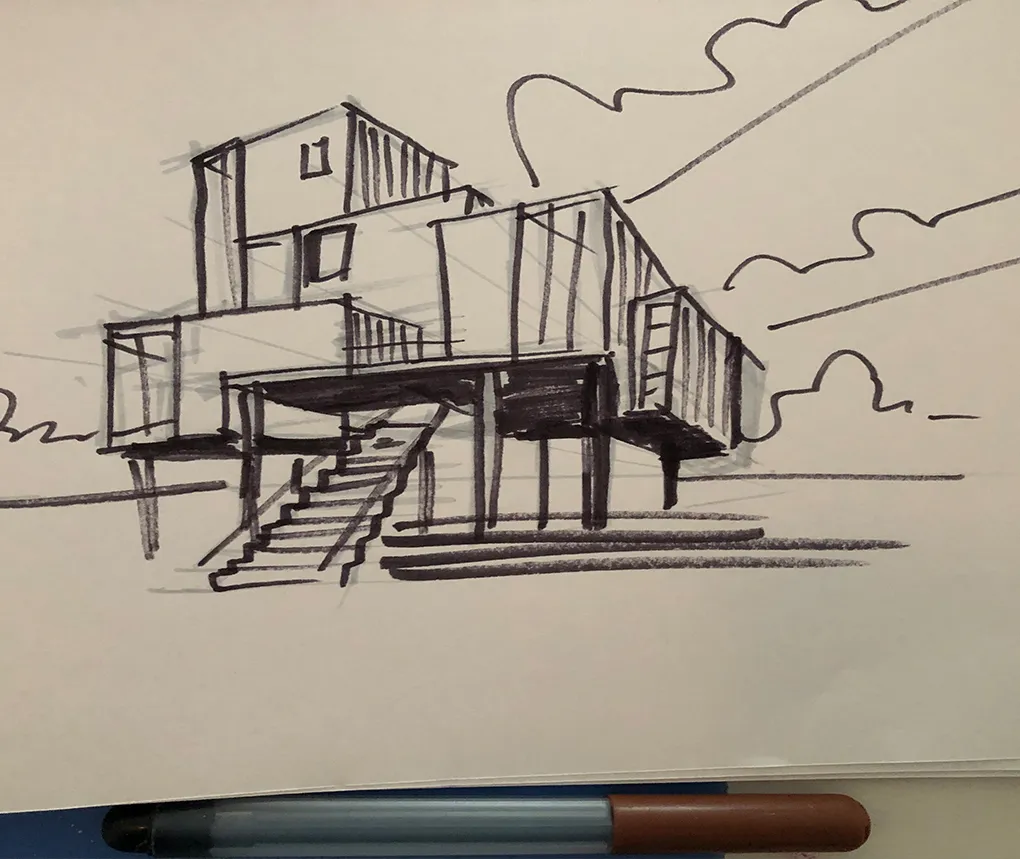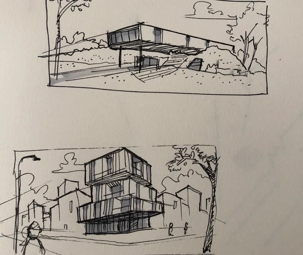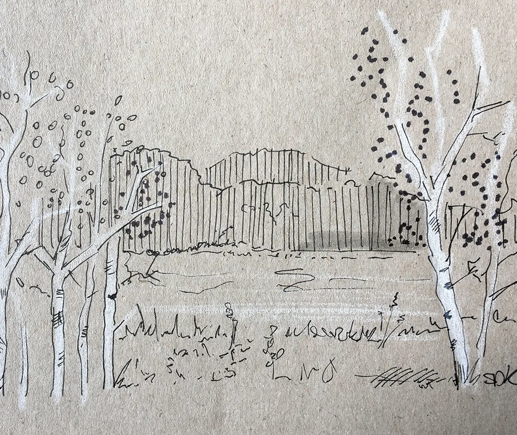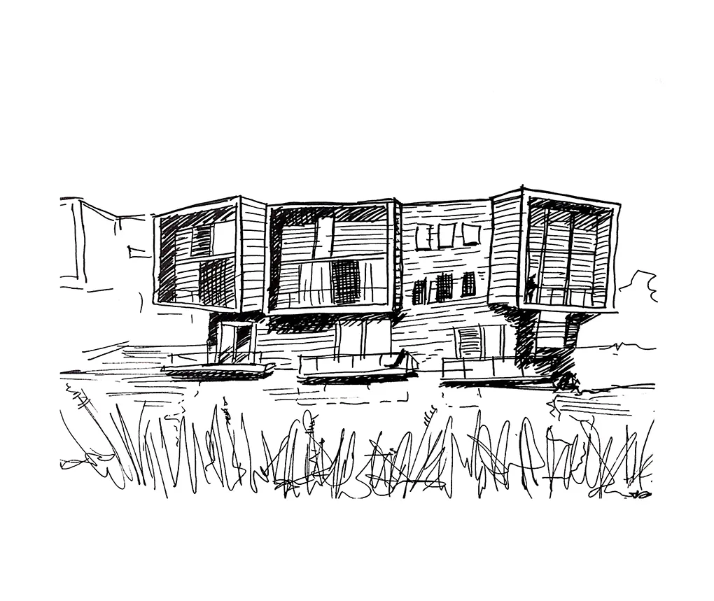 Ik ga ook regelmatig mee met architectuur excursies om daar buiten gebouwen te tekenen. Ook ga ik a en toe op pad met andere Urban Sketchers op om ergens op locatie leuke plekken uit de de stad te tekenen.