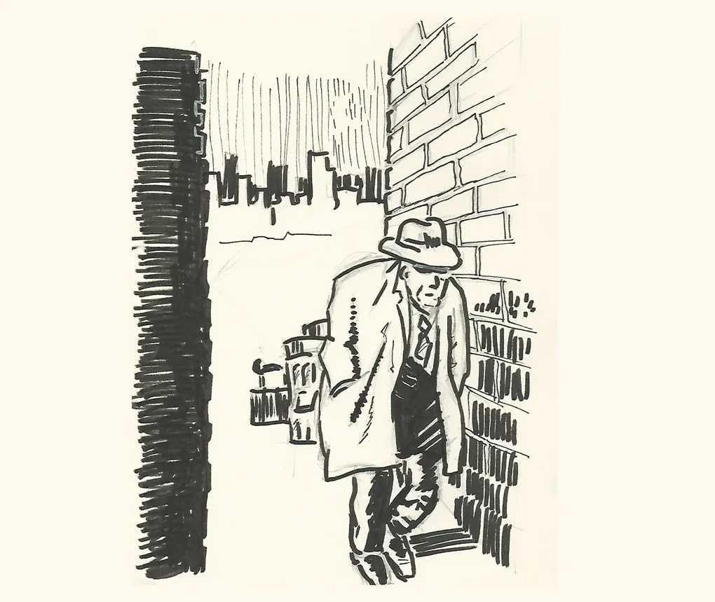 In de slider een kleine willekeurige impressie van zijn losse intuïtieve (en natuurlijk niet uitgewerkte) probeersels en schetsen uit zijn schetsboek.