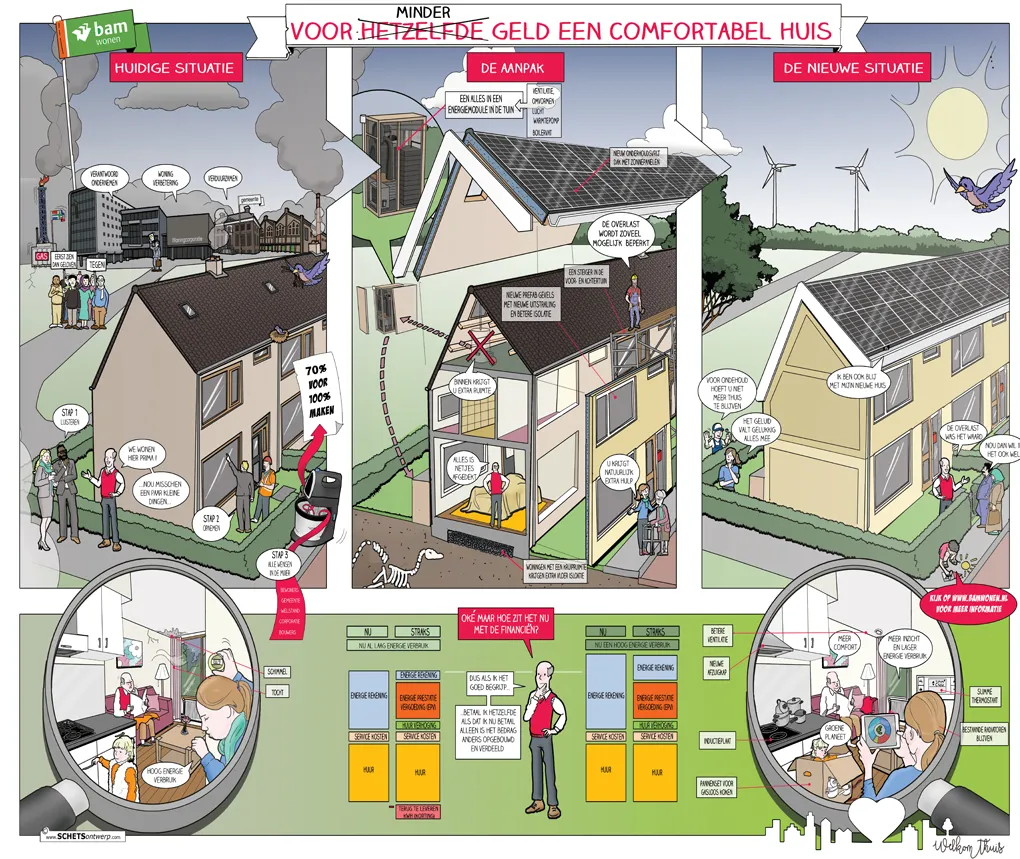Ik maak graag maatvaste en losse technische illustraties die uw gebouw of plek als een soort bouwpakket uitleggen.