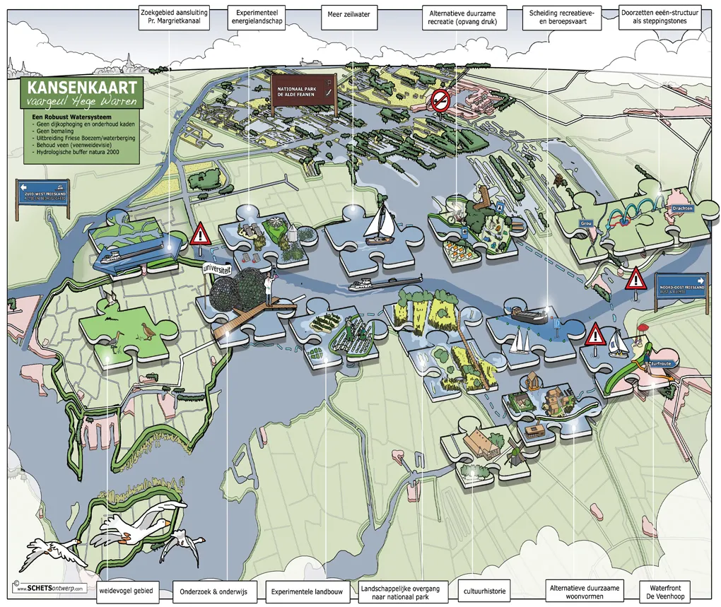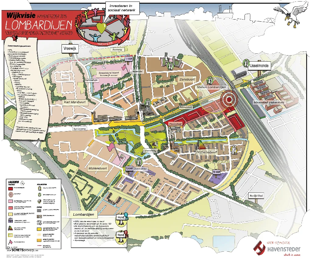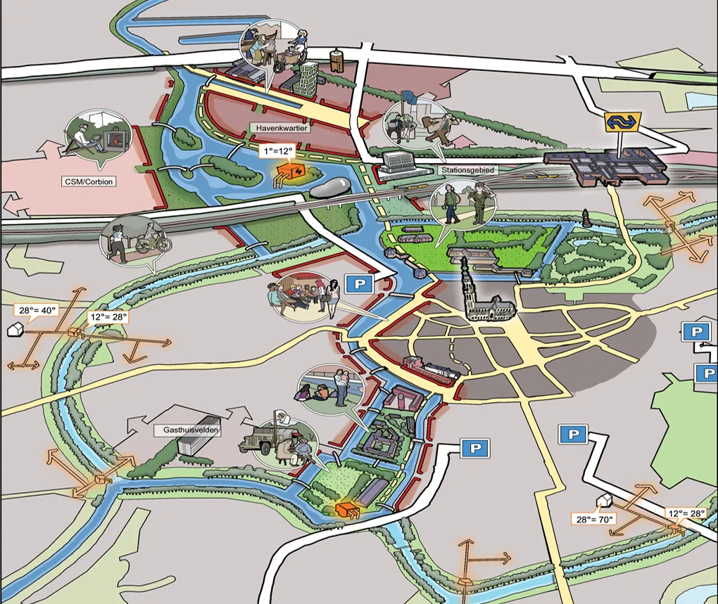 Een ruimtelijke visie is soms nog niet concreet genoeg om concreet in te kunnen tekenen. Het maken van een cartoonstijl visiekaart kan dan strategisch zijn. Deze lijkt -in tegenstelling tot een autocad kaart- losser en niet zo definitief. Kortom het is een werk- of groeikaart, die ruimte laat voor verdere ontwikkelingen in uw proces. Als stedenbouwkundige ben ik goed in staat om uw plan te analyseren en te vertalen naar heldere principes en kaartlagen. Ik kan zelfstandig de uitkomsten van een workshop of participatiebijeenkomst achteraf vertalen naar een legenda en visiekaart.